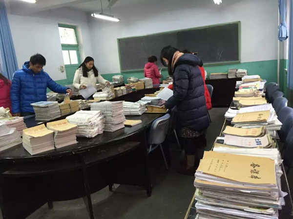 参加检查的人员是全体教师,他们认真翻阅每一本教案,仔细检查每一本作业,他们聚精会神,一丝不苟。体现了教师们认真严肃的工作态度和对学生高度负责的精神。