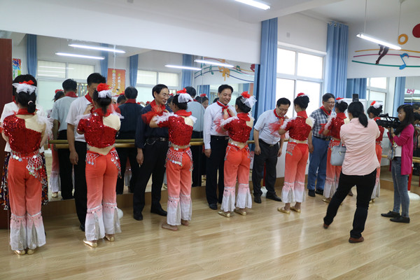 莺飞蝶舞,鸟语花香,又一个六一儿童节即将来临,大学党委书记徐剑波,副校长吴衍涛以及后勤的各位领导亲临附属学校看望指导。看到一年后附校天翻地覆的可喜变化,他们欣慰的笑了。