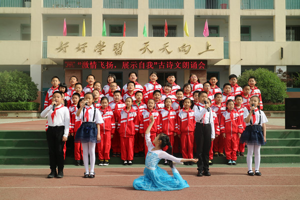 为丰富校园文化,全面提高学生品读美文、欣赏诗词的能力,2017年5月5日上午,农大附校全体师生汇聚一起,隆重举办了“激情飞扬,展示自我”古诗文朗诵会。