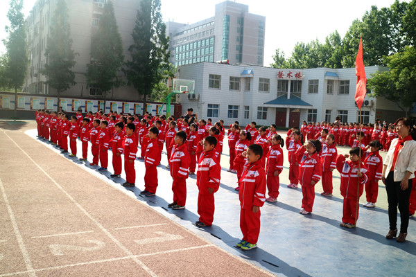5月18日早晨对山东农业大学附属学校的少先队员们来说是个特别的日子。早操时间,学校大队部在操场上举行了“红领巾心系中国梦——少先队新队员入队仪式”活动。