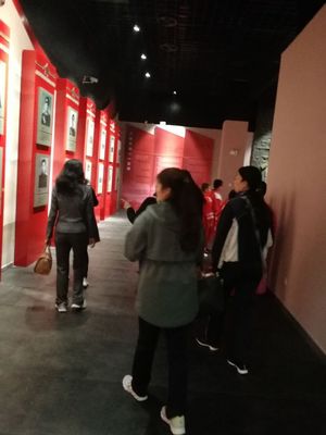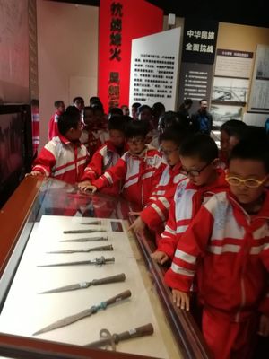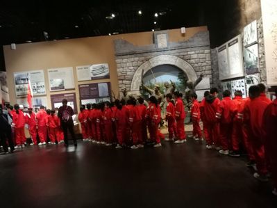 随后同学们排着整齐的队伍进入纪念馆,在讲解员的带领下,