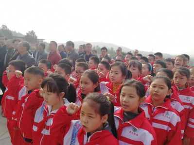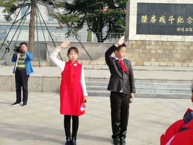 党员和少先队员们在陆房战斗纪念碑下庄严宣誓。