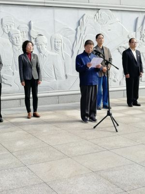 时间总是短暂的,参观结束后,师生们在纪念碑前合影留念,