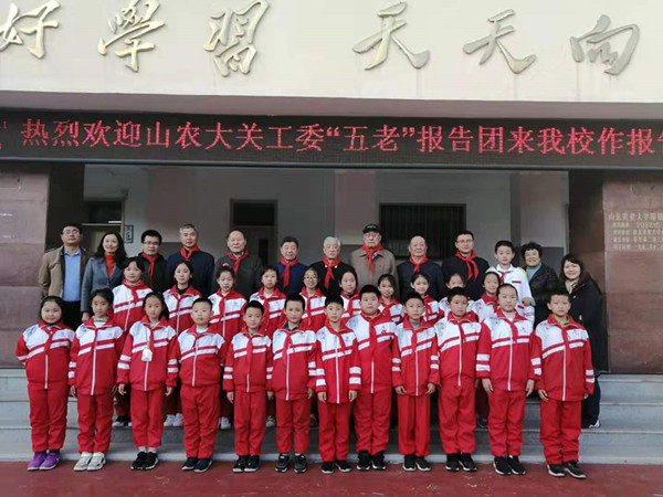 在这秋暮冬初,层林尽染,万山红遍,硕果累累的日子里,怀着伟大祖国70年华诞的喜悦心情,中国少年先锋队也迎来了建队70周年。为少年儿童讲好党史、国史和家乡史,打牢为中国梦努力奋斗的思想根基,11月11日下午,附属学校邀请山东农业大学关工委“五老”报告团为三至五年级同学作《我爱你,中国》专题报告。