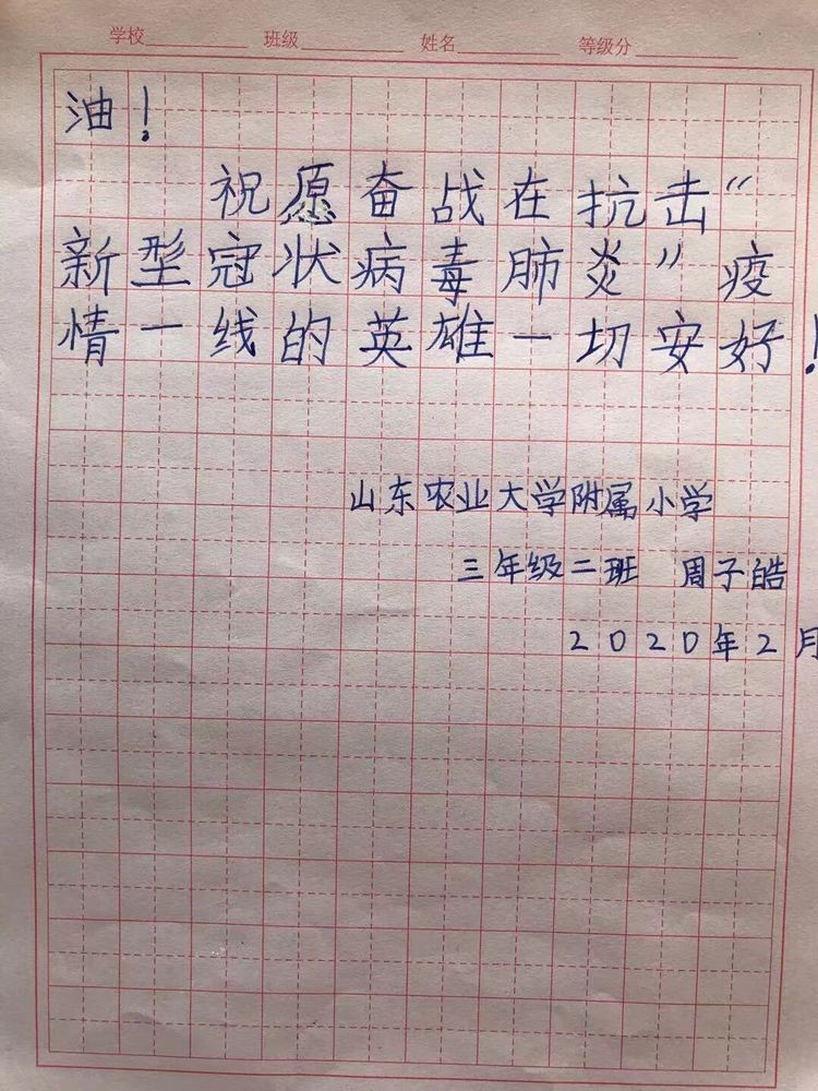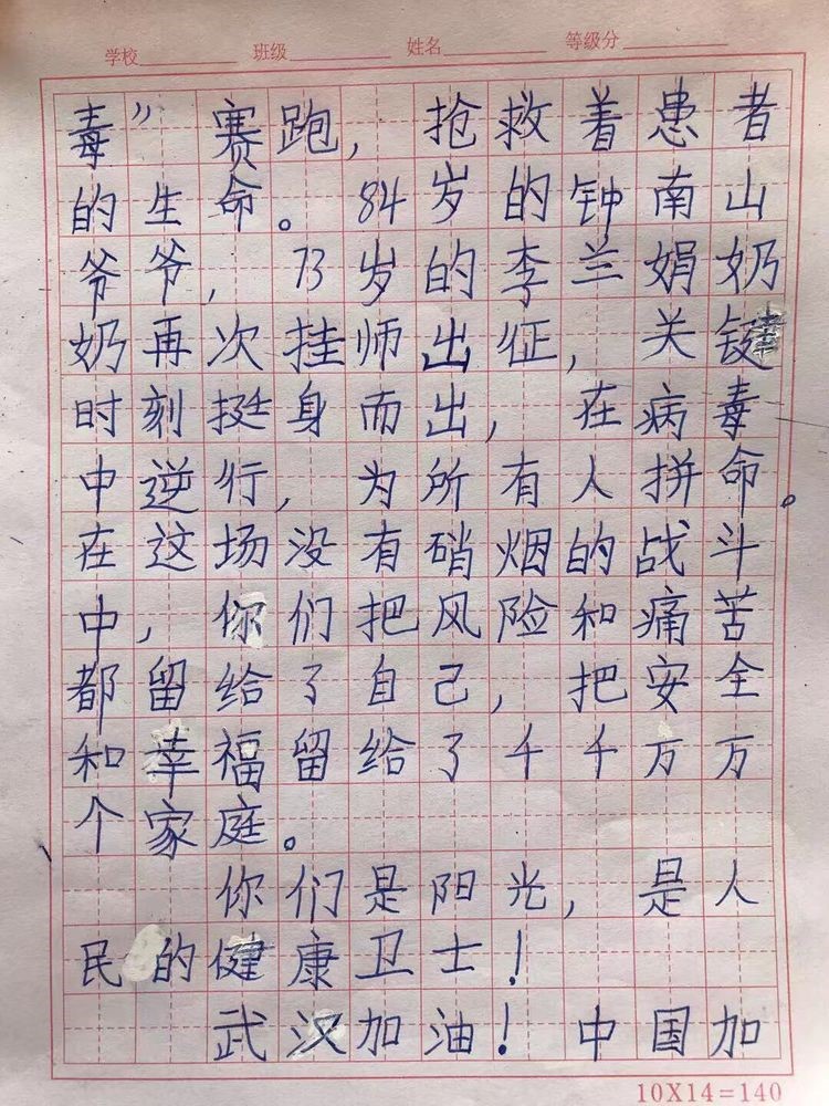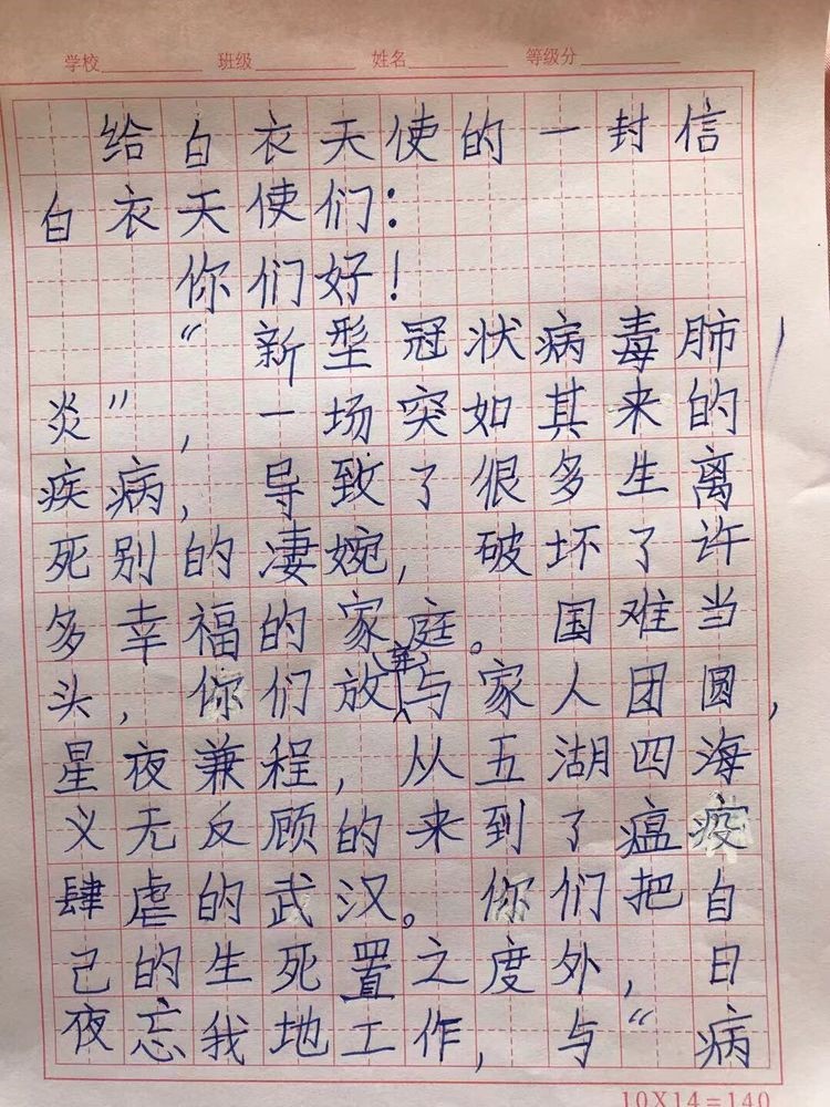 孩子还用美文表达出了对一线医护工作者的敬意和祝福!