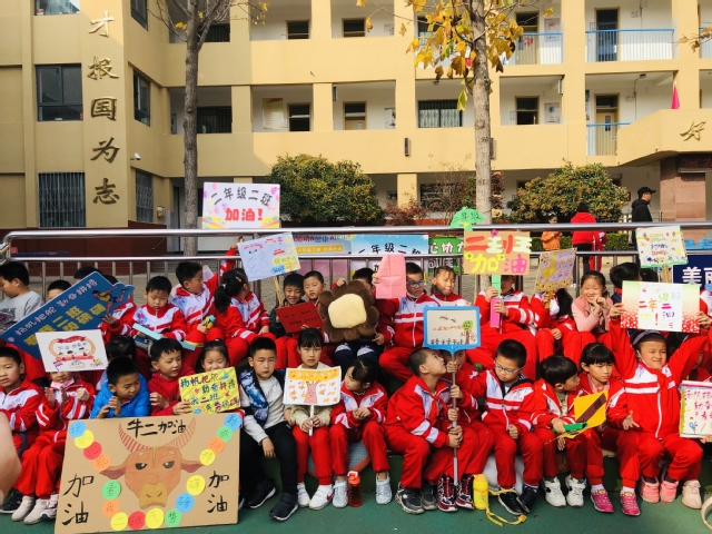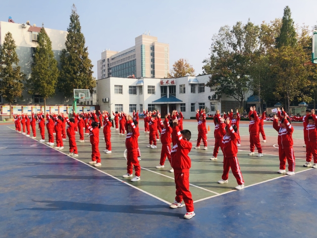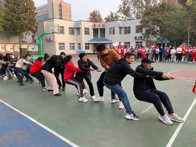 运动会开幕式举行了庄严的升国旗仪式,一年级学生表演了大型团体操《快乐迎冬奥》。运动会共设立了《为我加分》《闯关斩将》《我是神射手》《师生拔河》等多个趣味比赛项目。