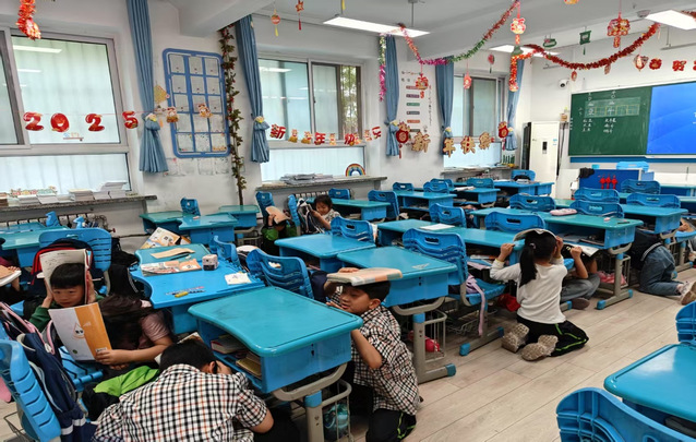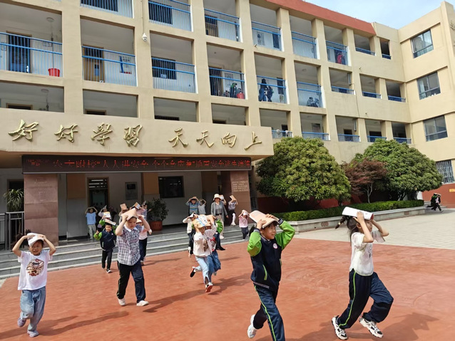 下午2时35分,急促的地震警报声划破校园宁静。教学楼内,各班教师迅速反应,指挥学生用书本护住头部,就近躲避在课桌下方。30秒“主震”结束后,第二声疏散指令响起,学生在教师引导下按预定路线分两列撤离。楼梯转角处,安全岗教师实时调控人流,防止拥挤。仅用时115秒,全体师生已全部安全抵达操场指定区域。