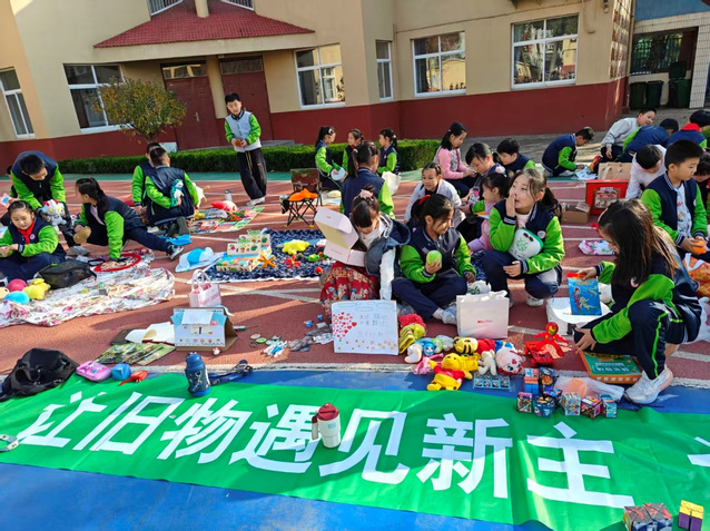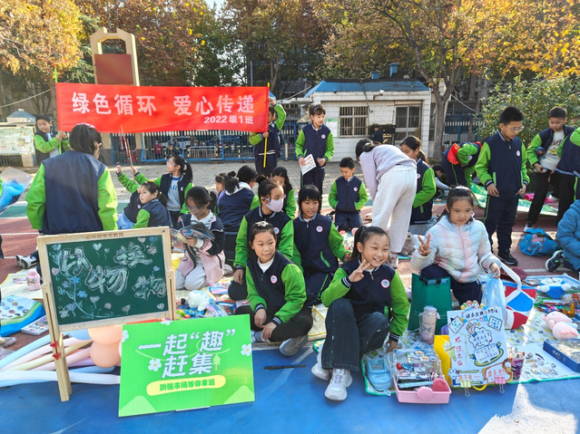 11月13日,山东农业大学附属学校操场化身为一片热闹非凡的“绿色海洋”。为深入践行环保理念,弘扬勤俭节约的传统美德,学校成功举办了以“绿色循环,爱心传递”为主题的首届校园绿色市集活动。此次活动旨在通过“以物易物”的实践形式,让闲置物品“活”起来,让环保意识在孩子们心中“扎下根”。