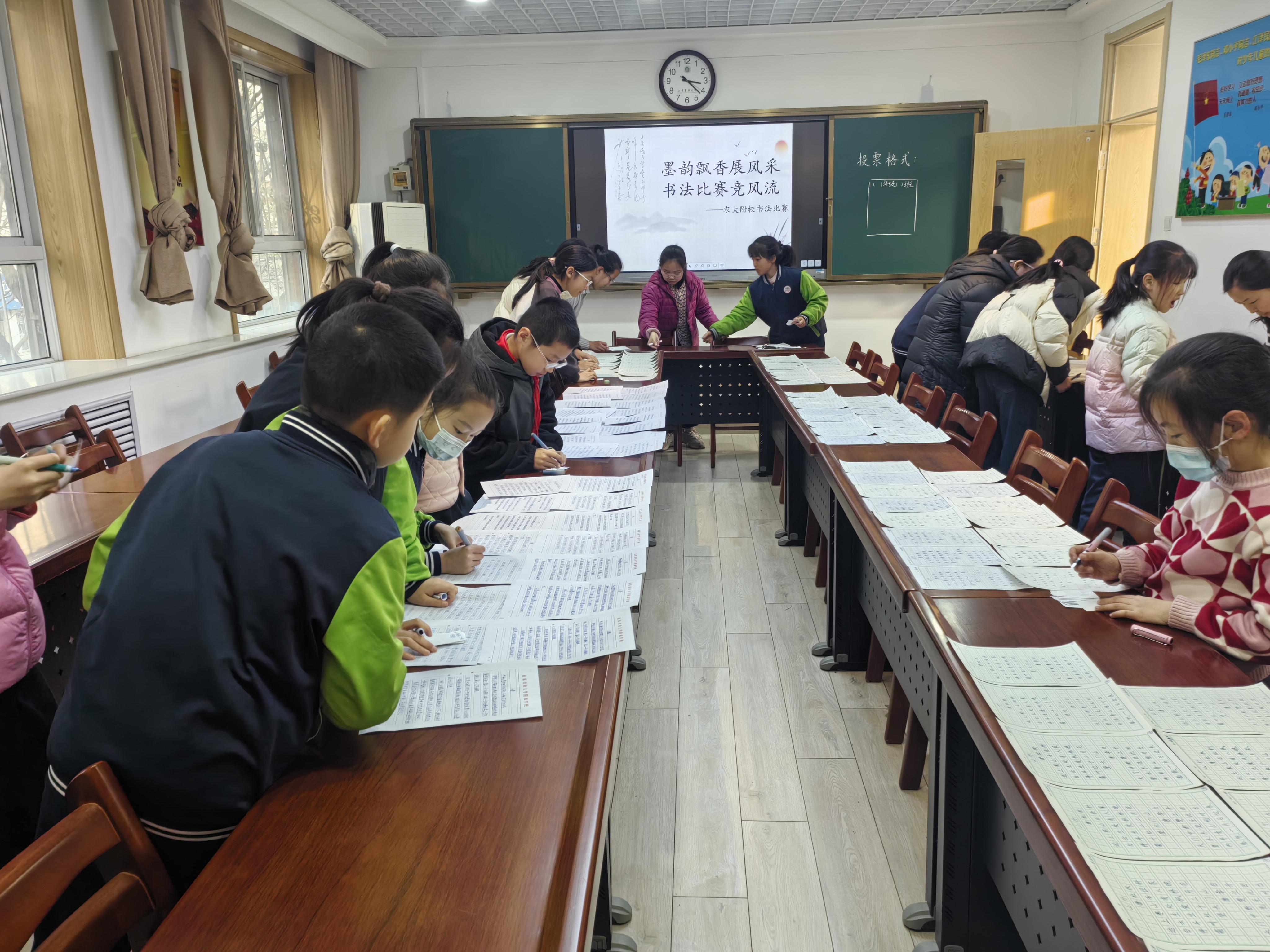 为传承中华优秀传统文化,丰富校园文化生活,近日,农大附校书法比赛圆满落下帷幕。本次比赛分为初赛与决赛两个阶段,全校学生全员参与初赛,由学生与家长共同投票,每班遴选出15名优秀选手晋级校级决赛。