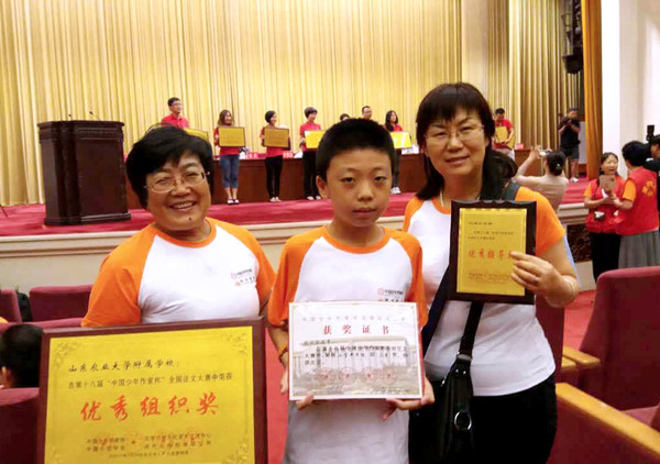 这是附校第十一次获得此项荣誉。十一年中,在校领导的大力支持和关心下,各位语文老师积极参加“中国少年作家杯”的征文活动,对学生精心培育悉心指导。汗水浇开幸福花,沉甸甸的奖杯和红艳艳的获奖证书是对老师和孩子们的无声奖励,肖复兴等著名作家对孩子们的教诲,在孩子的一生中都会是一份美好的记忆。